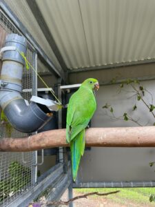 The Echo Parakeet (Alexandrinus eques) was once a critically endangered species in Mauritius, land of the extinct Dodo. After intensive conservation efforts, the species was saved from the brink of extinction, its population increased to an estimated 700 individuals and its status downlisted to vulnerable. However, several challenges remain: The species does not seem to disperse far naturally and due to lack of good quality forest, is still reliant on supplementary feeding provided at a few locations as well as artificial nest boxes. This has led to increasing population densities in the 2 main sub-populations as well as increased exposure to the Beak and Feather Disease Virus (BFDV), causing the Psittacine Beak and Feather Disease (PBFD). The number of Echo Parakeets in the wild has increased but in return, the general health of the population has been reduced, evidenced by increasing juvenile mortality.