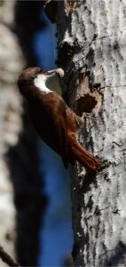The temperate forest biome in South America (35° to 55° S), is a designated Global Biodiversity Hotspot due to its remarkable species endemism (40% of bird species) and the presence of various human disturbances. These forests boast one of the highest proportions of cavity-nesting birds, constituting 57% of the bird community, including 25 secondary cavity-nesting species and four excavator species. Bird excavators play a vital ecological role by providing cavities to a broad range of vertebrate and invertebrate species. Within these temperate forests, the White-throated treerunner (Pygarrhichas albogularis) stands out as a tree cavity excavator. Despite its current Least Concern status, this species confronts habitat threats due to deforestation and forest fragmentation. The White-throated treerunner is recognized as a forest specialist and a key habitat facilitator, providing nesting sites for various bird and mammal species in southern South America. It is considered a “living fossil” as it is the only living species of the genus Pygarrhichas, mainly found in Chile and Argentina. Unfortunately, ecological data is scarce, with only one study focusing on its foraging habits. To better understand its vulnerability to human disturbances, further ecological research is imperative. Anthropogenic disturbances responses differ among species and populations, particularly between the northern and southern hemispheres. South American temperate forests contend with notable human pressures in lower latitudes, while higher latitudes predominantly undergo climate-induced environmental shifts, characterized by some of the planet’s swiftest warming rates. The southernmost ecosystems in South America serve as “sentinel systems,” offering early insights into more widespread changes. Hence, this region is well-suited for examining climate-demography relationships and their effects on treerunner populations at varying latitudes.
